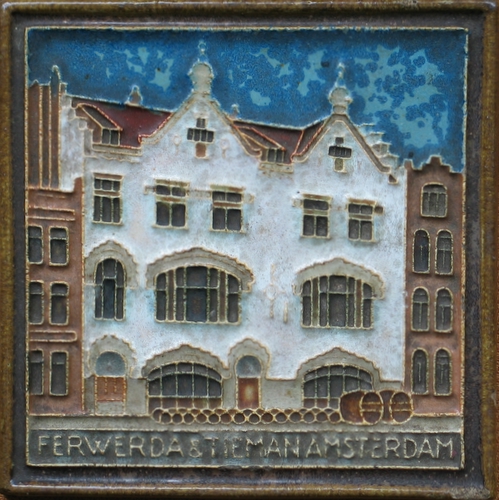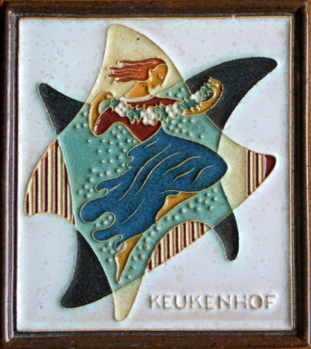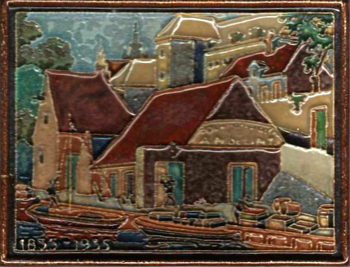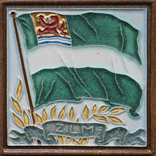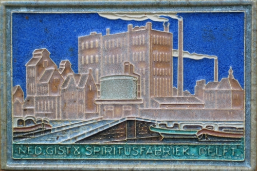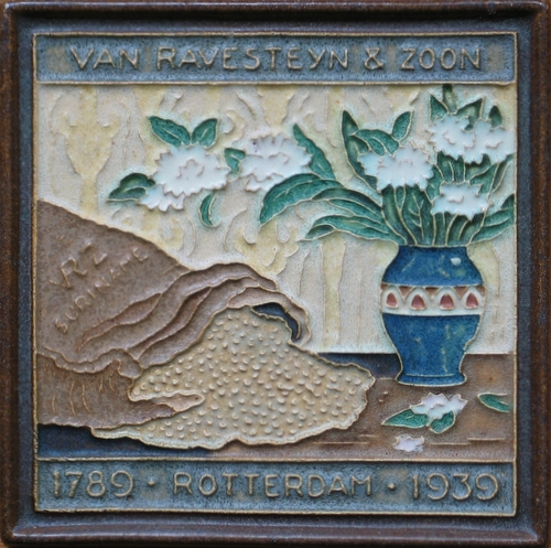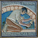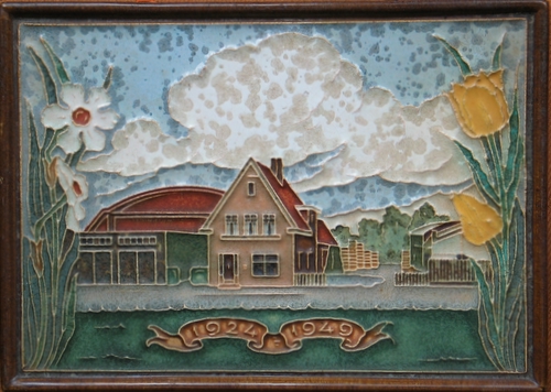 1924 At the back of this -numbered- tile (this one has nr.2318) there is the following text (in Dutch): “Presented by Oliefabrieken Calvé-Delft on 31st May 1924”. All permanent and casual staff received this tile as “a mark of honour for forty years of devoted service”. |