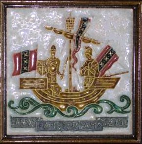 Anno AMSTERDAM 1275 Old wax seal of Amsterdam, depicting a vessel called a “cog”. The tile was issued on the 650th anniversary of Amsterdam |