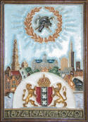 1957 The text on the back of the tile translates as:”Presented on the occasion of the 100th anniversary of the technical departments -read ‘utilities”- of the town of Schiedam, 1st October 1956