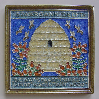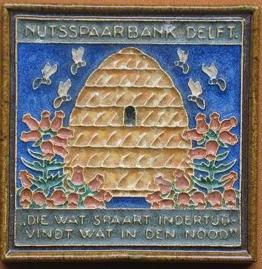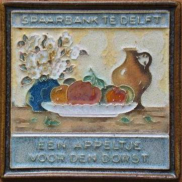Spaarbank te Delft Jong vergaard, oud veel waard Saved early, well off in later years |