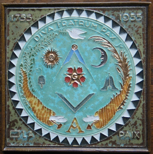1955 LA PAIX Tegel van de loge LA PAIX uit Amsterdam Vrijmetselarij Tile of the Amsterdam Masonic Lodge “La Paix” |