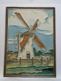 | Achtkante bovenkruier Korenmolen met brug en huisjes "Towermill" Corn-mill with bridge and houses |
