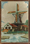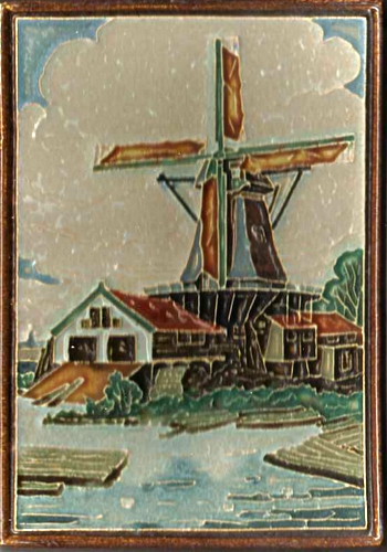 Achterkant tegel : Ancient Dutch corn mill with the compliments of Nederlandsche Handel Maatschappij Amsterdam Cornmill At the back : Ancient Dutch water mill with the compliments of Nederlandsche Handel Maatschappij Amsterdam |