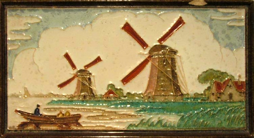 Watermolen Achterkant tegel : Ancient Dutch water mill with the compliments of Nederlandsche Handel Maatschappij Amsterdam Watermill At the back : Ancient Dutch water mill with the compliments of Nederlandsche Handel Maatschappij Amsterdam