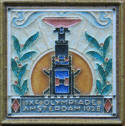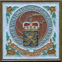 "DE KAAG" -1960 This tile was made to commemorate the 50th anni- versary of a well known Dutch boating club “de Kaag”. As a special gesture, on the day of the jubilee, a dinner was organised, the menu of which was attached to the back of the tile, with each member received a tile at the table |