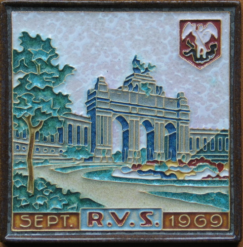 Halve eeuwfeestboog te Brussel Showing the “Triumphal Arch” in the Cinquantenai-re Park in Brussel. The sky on the tile is WHITE |