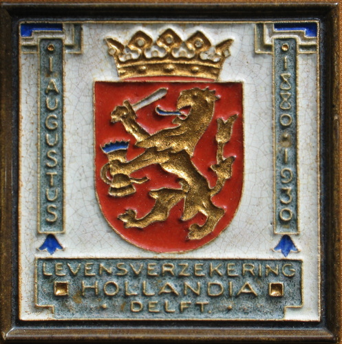 1 Augustus 1880-1930 Levensverzekering Hollandia Delft - kleur grijs This tile was made to celebrate the centenary of the Delft Life Insurance Company “Hollandia” |