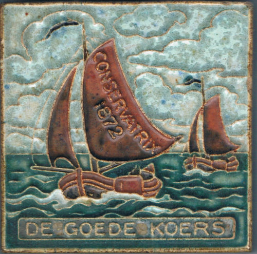 jubileum "Oranje" "Oranje" is een onderlinge verzekering van zee- en binnenschepen te Groningen Tile presented on the occasion of the 50th anniversary of the “ORANJE” association, a mutual insurance company for seagoing- and river vessels |