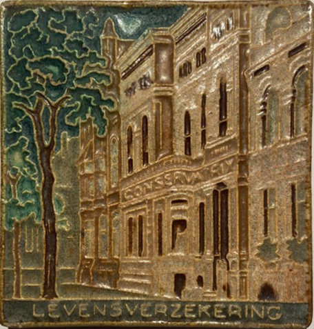 1933 One of the first large Dutch insurers, established in 1879, now part of the “AEGON” Group. The text on the tile states: “Foundation stone laid by Anna Snyders, granddaughter of Mr. C.J. Snyders” |