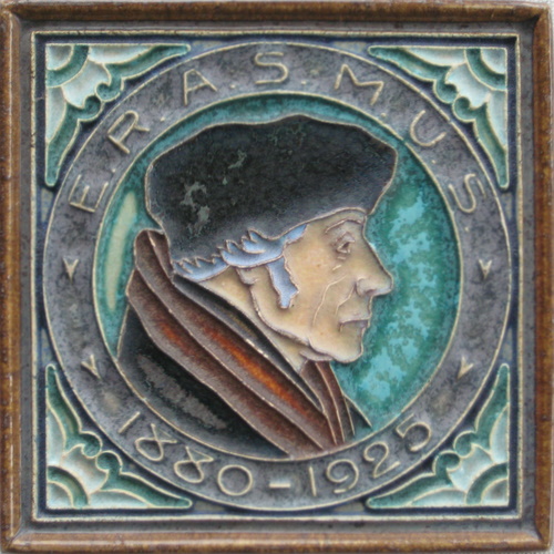 Erasmus 1880 - 1925 Historisch juiste data 1466/1469 - 1536 The historically correct dates on this com-memorative tile should be 1466/69-1536 |
