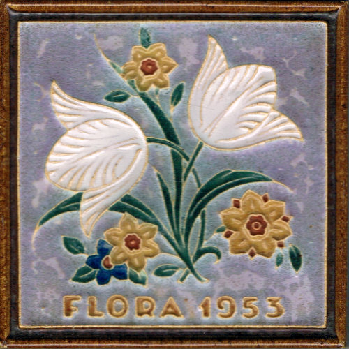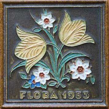 bloemen bruin en wit FLORA 1953, large flowers brown and white |