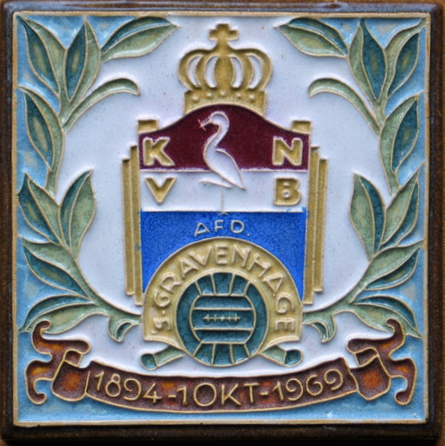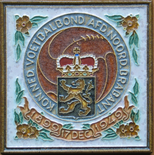 1894 K.N.V.B. Afd. R'dam 1954 ”Stronger through combat” - text on tile issued by the Rotterdam branch of the Royal Dutch Football Federation, on the occasion of its 60th anniversary |